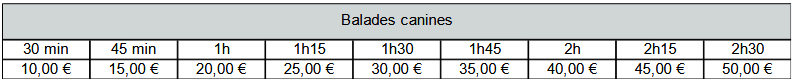 5€ supplémentaires pour balader deux chiens en même temps. Pour 3 chiens ou plus, il faut compter une balade supplémentaire.
