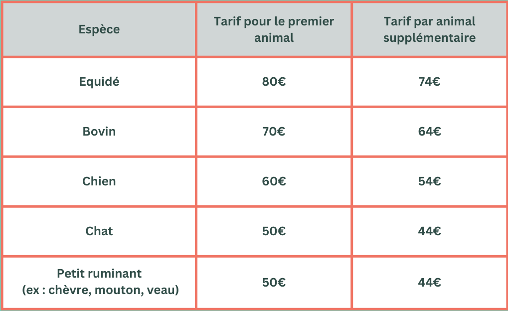 Tarifs sur devis pour 4 animaux ou plus.